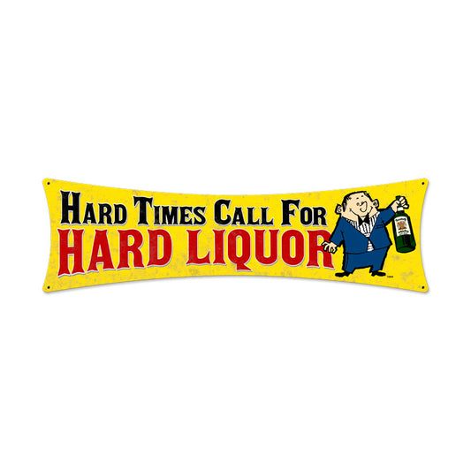 Hard Liquor, Humor, Bowtie Metal Sign, 27 X 8 Inches