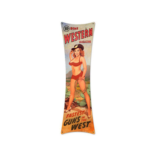 Western Magazine, Pinup Girls, Bowtie Metal Sign, 27 X 8 Inches