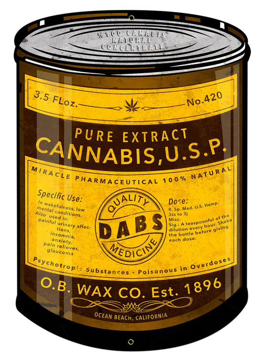 Dabs, Wax, Ocean Beach Dabs Company, Cannabis Fluid Extract, Medicine, Poison, 100% Natural Cannabis Extract, Oil Can Metal Sign 14"x20"