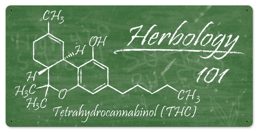 Herbology THC Molecule chalkboard Marijuana Metal Sign 24"x12"