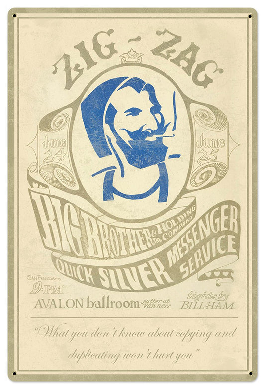 Zig-Zag Man rolling papers Stanley Mouse and Alton Kelly Metal Sign