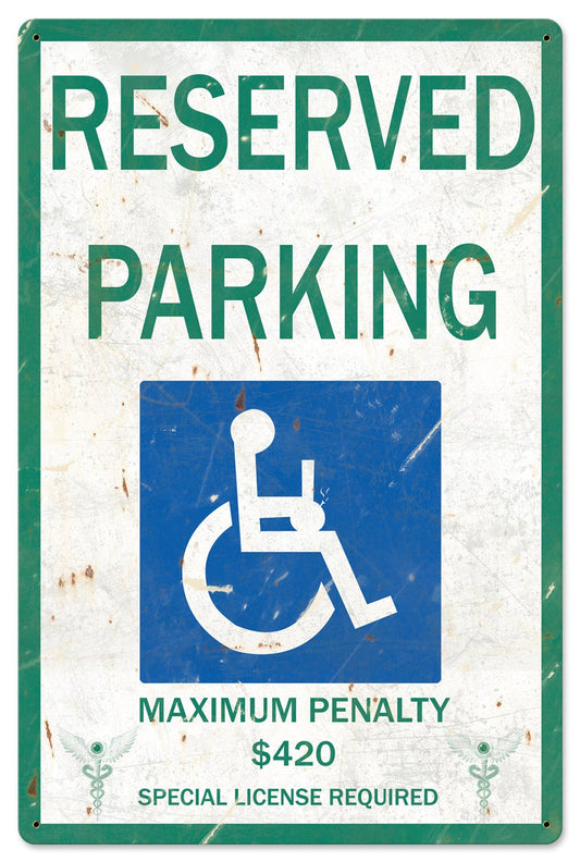 Reserved Parking Handicap 420 Special License Required Marijuana Metal Sign24"x16"