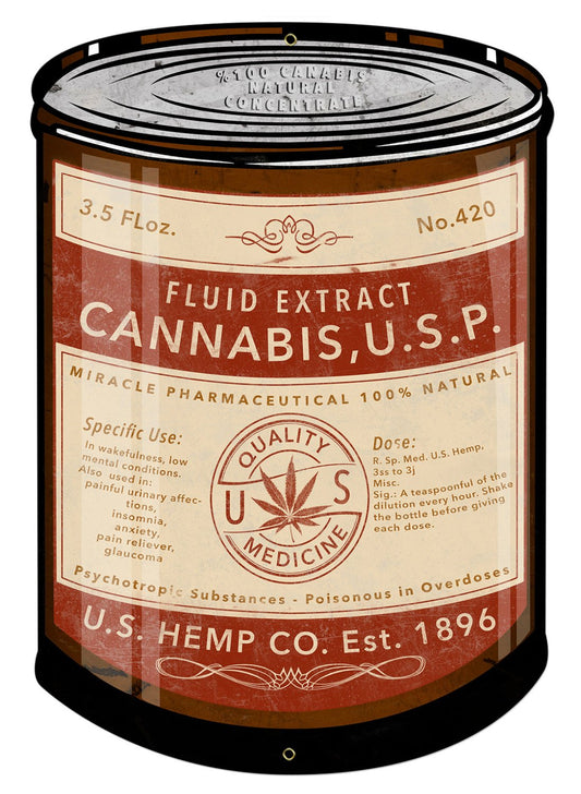 Cannabis Fluid Extract, US Hemp Co. Medicine, Poison, 100% Natural Cannabis Extract, Oil Can Metal Sign 14"x20"