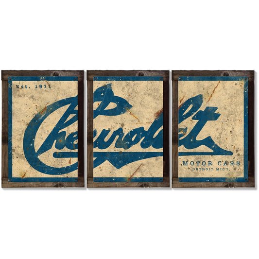 Chevrolet Wall Art, Triptych METAL Sign, Optional Barn Wood Style Frame