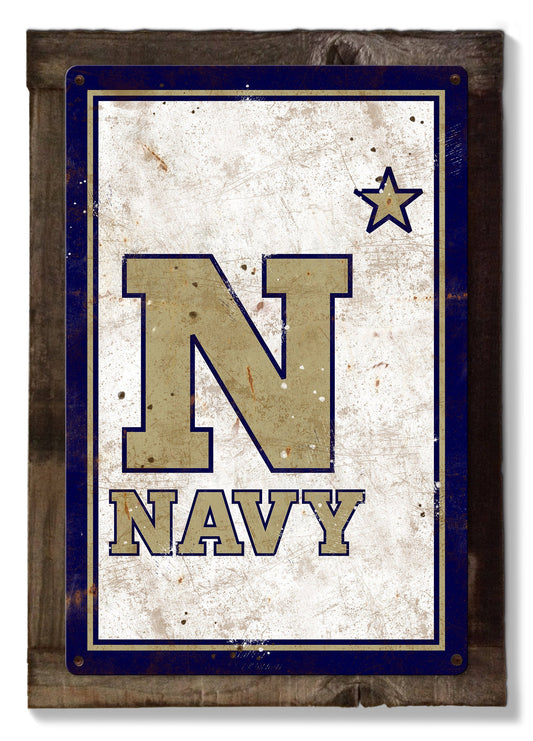 Navy Midshipmen, Wall Art, Rustic Metal Sign, Optional Rustic Wood Frame, College Teams, Mascots, and Sports