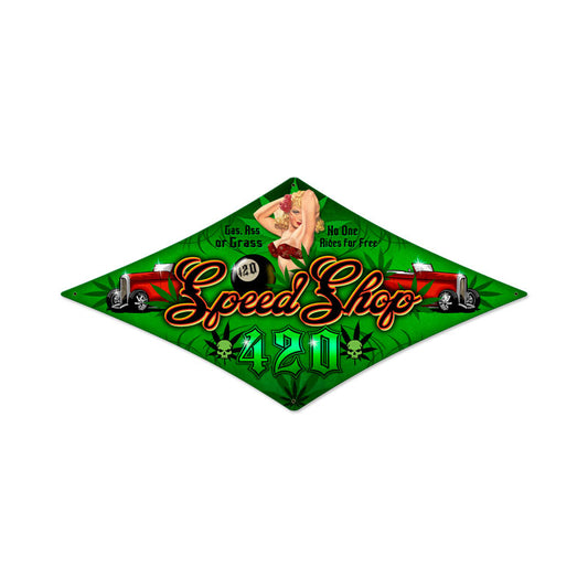 420 Speed Shop, Food and Drink, Diamond Metal Sign, 14 X 24 Inches