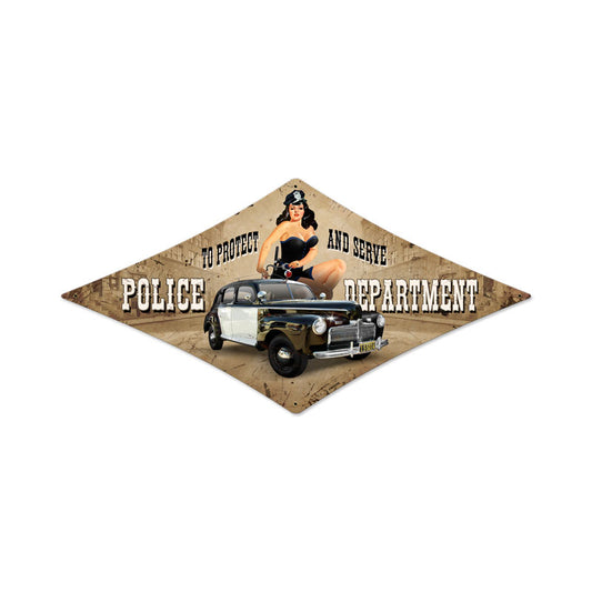 Police Department, Pinup Girls, Diamond Metal Sign, 14 X 24 Inches