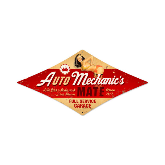 Auto Mechanic, Automotive, Diamond Metal Sign, 14 X 24 Inches