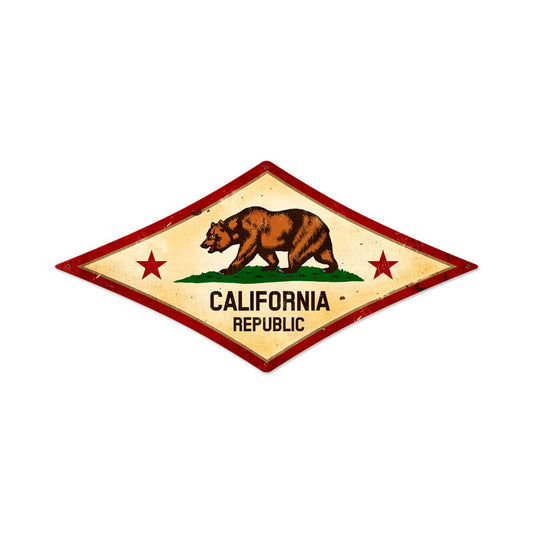 California Flag, Home and Garden, Diamond Metal Sign, 24 X 12 Inches