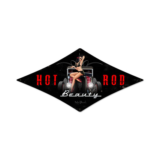 Hot Rod Beauty, Pinup Girls, Diamond Metal Sign, 22 X 14 Inches