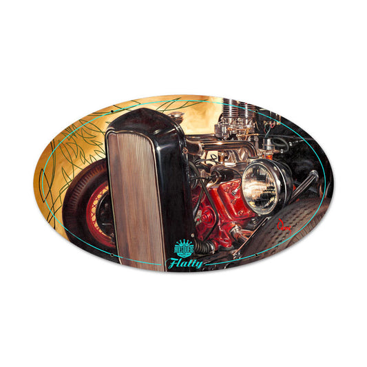 Flatty, Automotive, Oval Metal Sign, 24 X 14 Inches