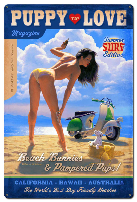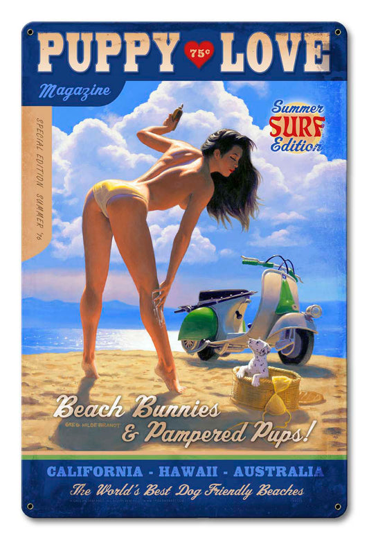 Puppy Love Vintage Sign, Pinup Girls, Metal Sign, Wall Art, 24 X 36 Inches