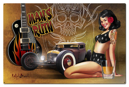 MANS RUIN, Ralph Burch, Metal Sign, Wall Art, 38 X 25 Inches