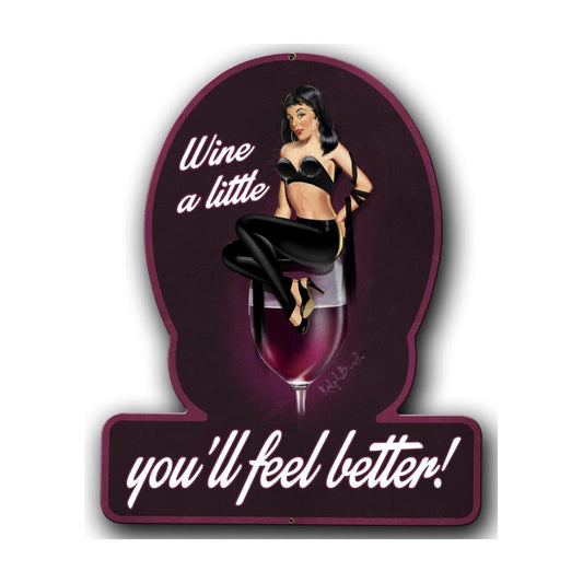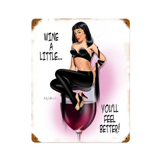 Wine A Little, Pinup Girls, Vintage Metal Sign, 12 X 15 Inches