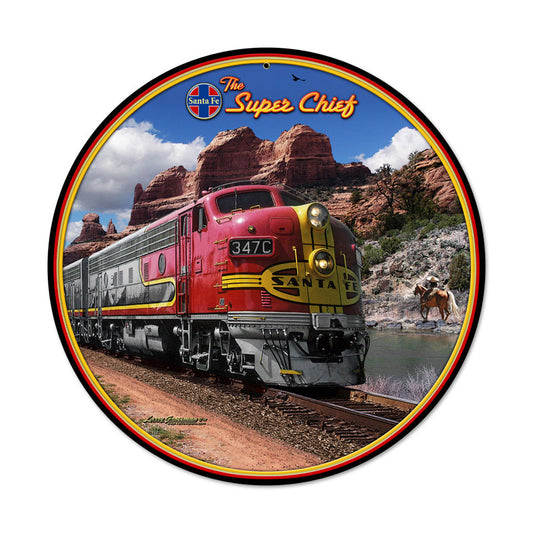 Super Chief, Train and Rail, Round Metal Sign, 28 X 28 Inches