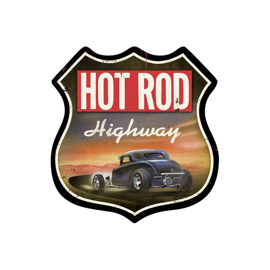 Hot Rod Highway, Automotive, Shield Metal Sign, 28 X 28 Inches