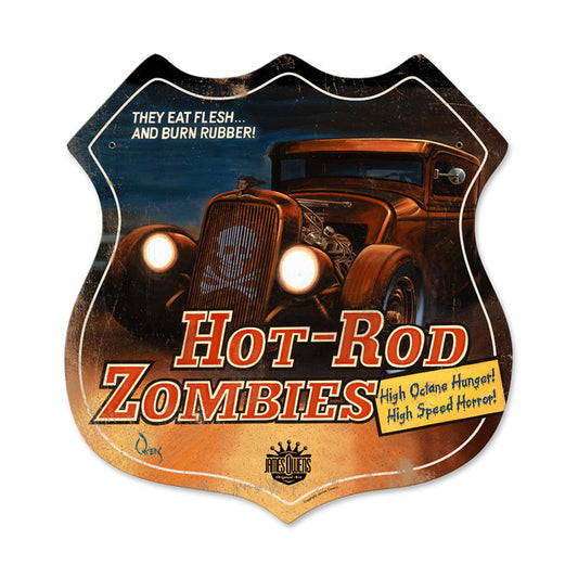 Hot Rod Zombies, Automotive, Shield Metal Sign, 15 X 15 Inches