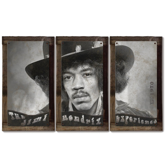 Jimi Hendrix, The Experience, METAL Sign, Triptych, 3 Panel, On American Steel, Optional Barn Wood Frame, Wall Decor, Wall Art, 54"x36"