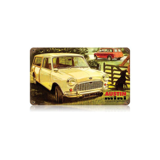 Austin Mini Countryman Vintage Sign, Transportation, Metal Sign, Wall Art, 14 X 8 Inches