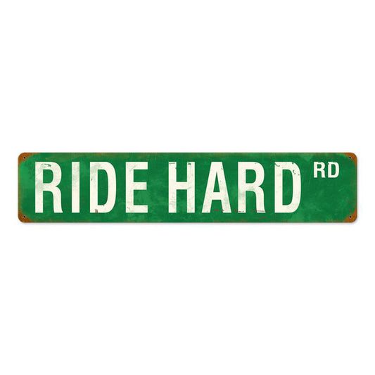 Ride Hard Rd Vintage Sign, Transportation, Metal Sign, Wall Art, 6 X 28 Inches