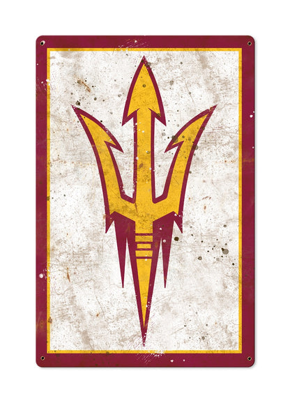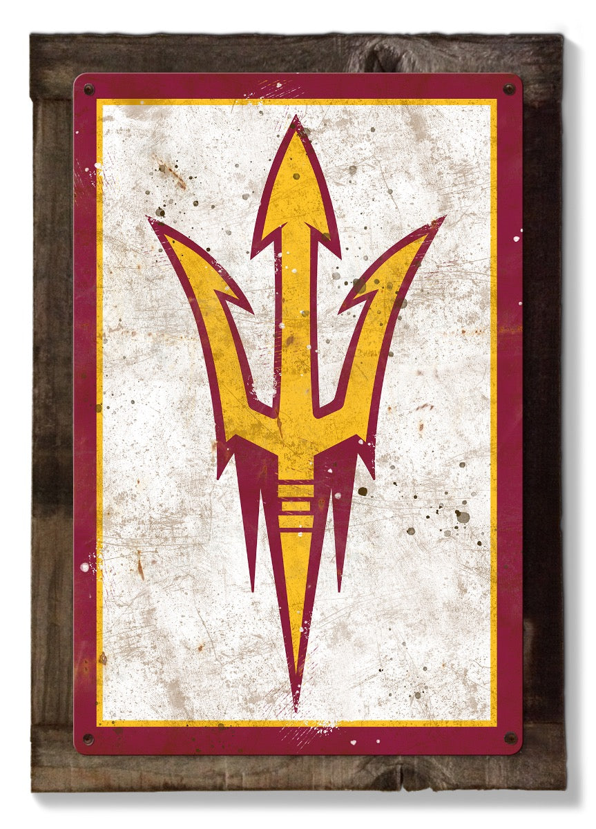 Arizona Sun Devils Wall Art NCAA metal sign is made from 24 gauge American steel (No Flimsy Tin Here). Select from three different sizes: Large, Medium, Small. Also, available with an optional rustic wood frame. Designs are baked into a powder coating for a durable finish. Unlike other tin signs, canvas prints, and posters, our metal signs will not bend, fold, dent, or wrinkle over time. You can take a hammer to our signs. Our signs are hand made just like in the days. Rest assured these metal signs are made to last!