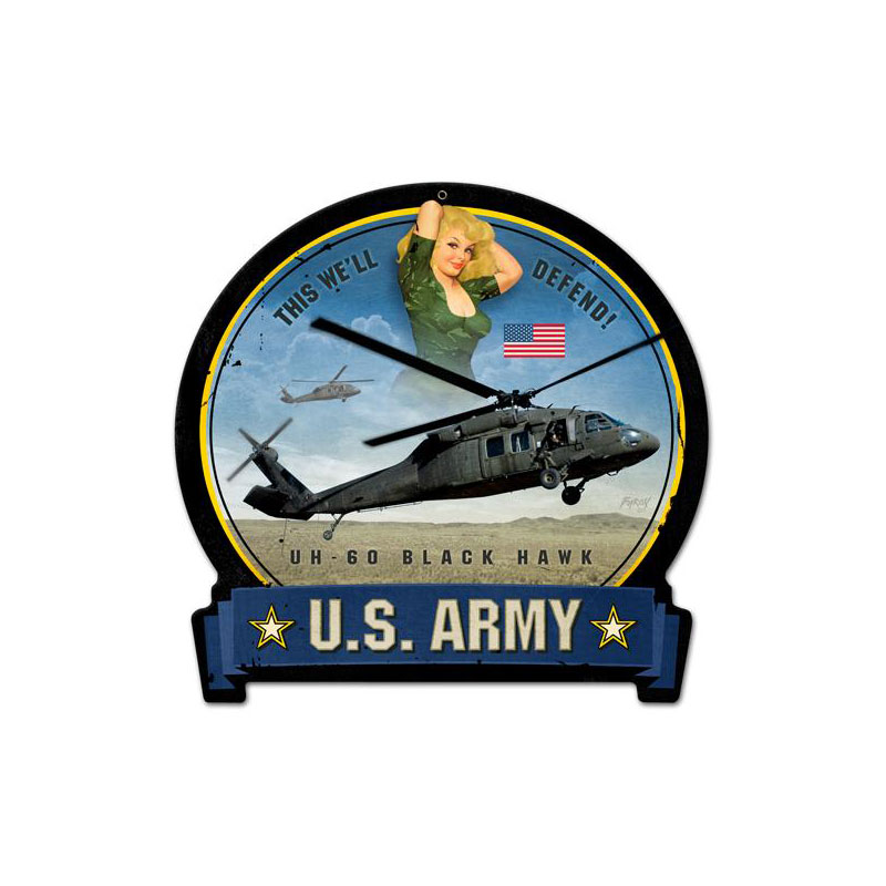 Army Blackhawk, Pinup Girls, Round Banner Metal Sign, 16 X 15 Inches