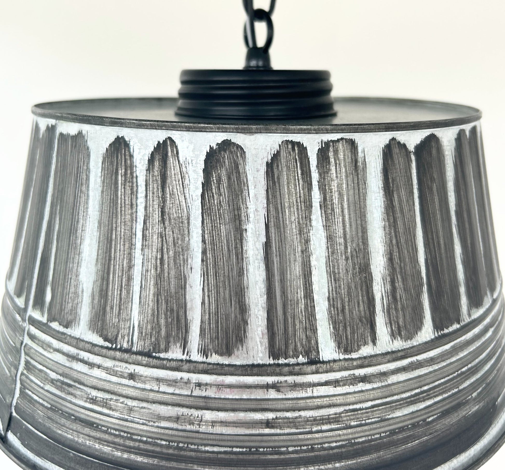 Add rustic farmhouse charm to your home with this Black Ribbed Galvanized Ceiling Light. Featuring a distressed black finish and ribbed galvanized metal shade, this handcrafted fixture brings texture, warmth, and industrial farmhouse character to any room. Perfect for kitchens, hallways, laundry rooms, or entryways, it’s proudly made in the USA by The Lamp Goods.