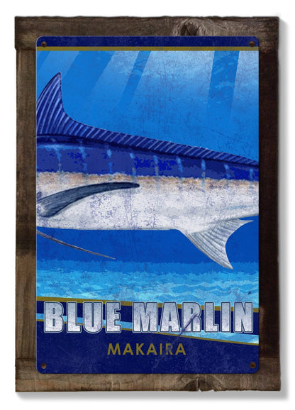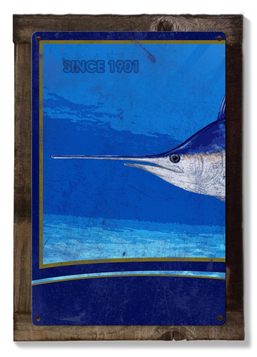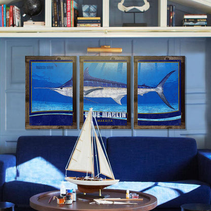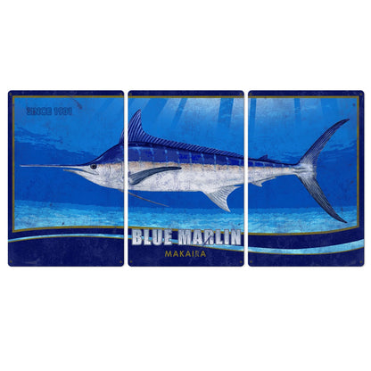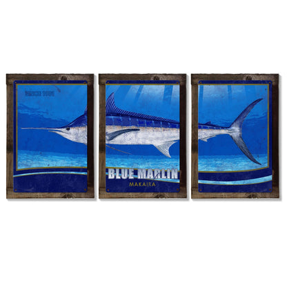 Blue Marlin, Metal Triptych, Optional Rustic Wood Frame, Sport Fishing, Wall Art, Ocean, Nautical, Contemporary Art, Vintage, Made in USA!