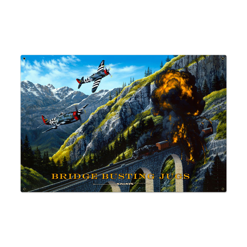 Bridge Busting, Aviation, Metal Sign, 36 X 24 Inches