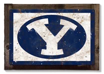 BYU Cougars Wall Art, NCAA Rustic Metal Sign, Optional Rustic Wood Frame, College Teams, Mascots, and Sports