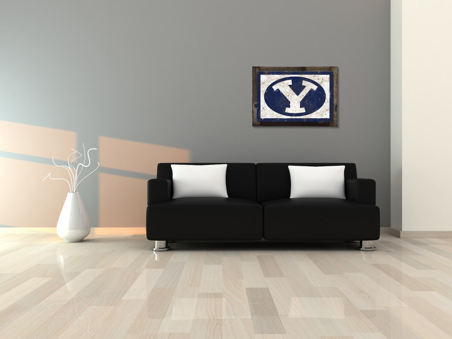 BYU Cougars Wall Art NCAA metal sign is made from 24 gauge American steel (No Flimsy Tin Here). Select from three different sizes: Large, Medium, Small. Also, available with an optional rustic wood frame. Designs are baked into a powder coating for a durable finish. Unlike other tin signs, canvas prints, and posters, our metal signs will not bend, fold, dent, or wrinkle over time. You can take a hammer to our signs. Our signs are hand made just like in the days. Rest assured these metal signs are made to last!
