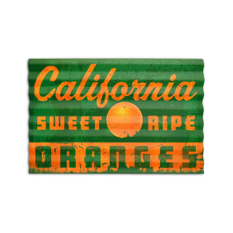 California Oranges, Food and Drink, Corrugated Rustic Barn Wood Sign, 24 X 16 Inches