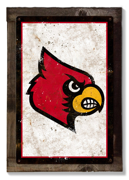 Cardinals Wall Art, NCAA Rustic Metal Sign, Optional Rustic Wood Frame, College Teams, Mascots, and Sports