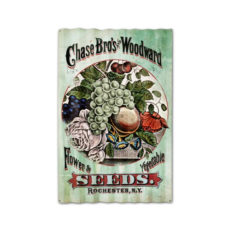 Chase Brothers Seeds Corrugated, Food and Drink, Corrugated Rustic Barn Wood Sign, 16 X 24 Inches