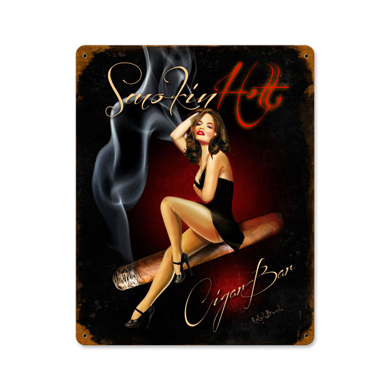 Cigar Bar, Pinup Girls, Vintage Metal Sign, 12 X 15 Inches