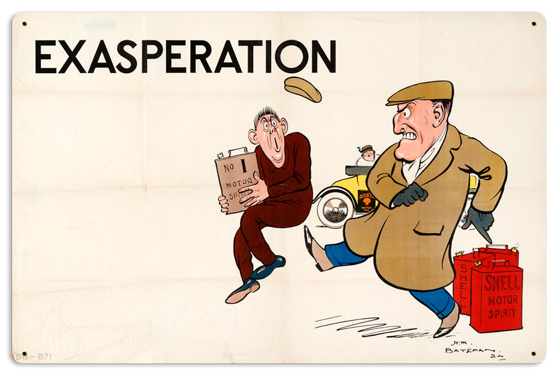 From the Shell licensed collection, this Exasperation Bateman Metal Sign measures 24 inches by 16 inches and weighs in at 4 lb(s). This Metal Sign is hand made in the USA using heavy gauge American steel.