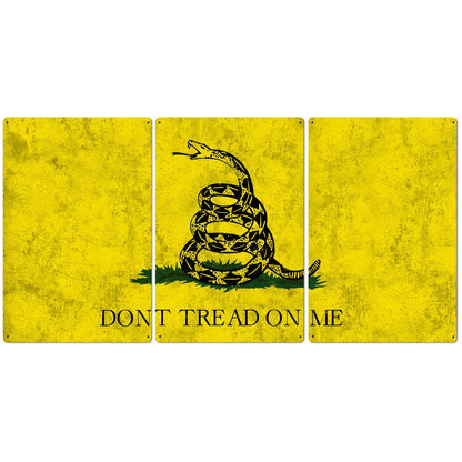 Gadsend Don't Tread on Me Flag, METAL Triptych Sign, Rattlesnake, Wall Decor & Art
