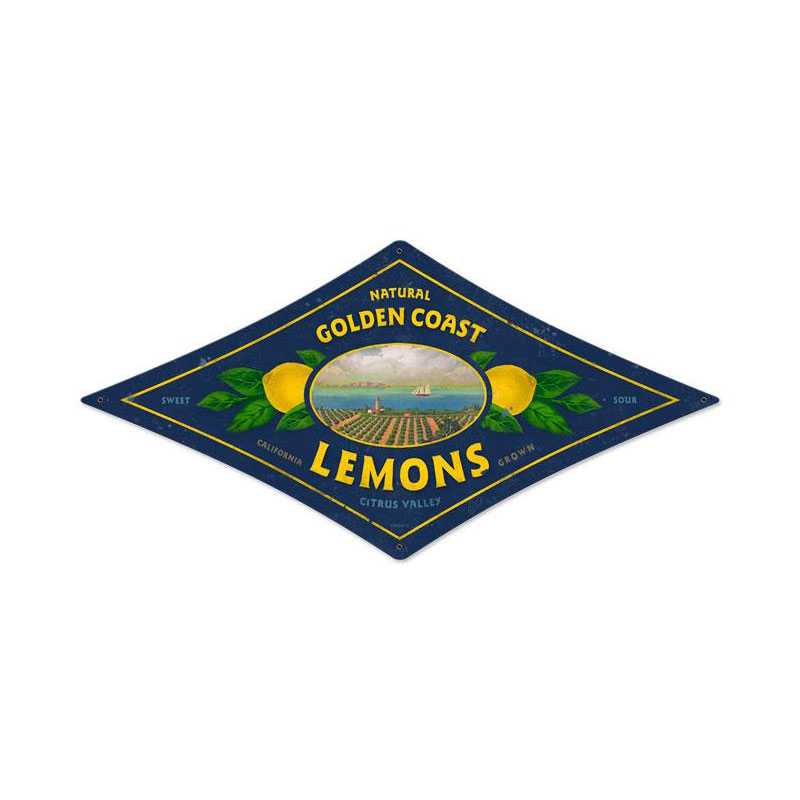 Golden Coast Lemons, Food and Drink, Diamond Metal Sign, 22 X 14 Inches