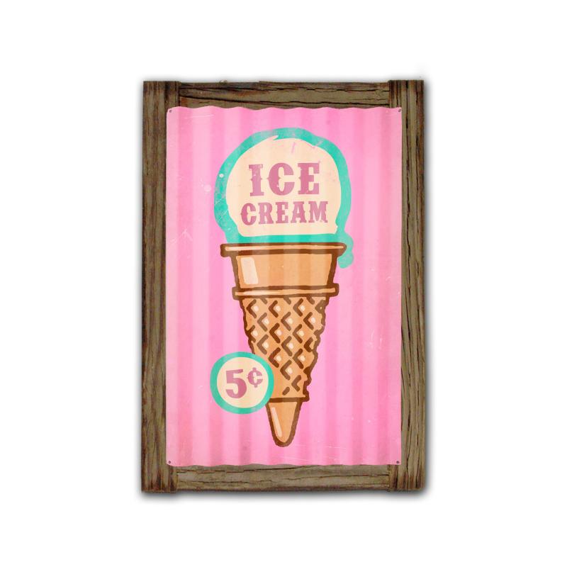 Ice Cream Corrugated Framed, Food and Drink, Corrugated Rustic Barn Wood Sign, 16 X 24 Inches