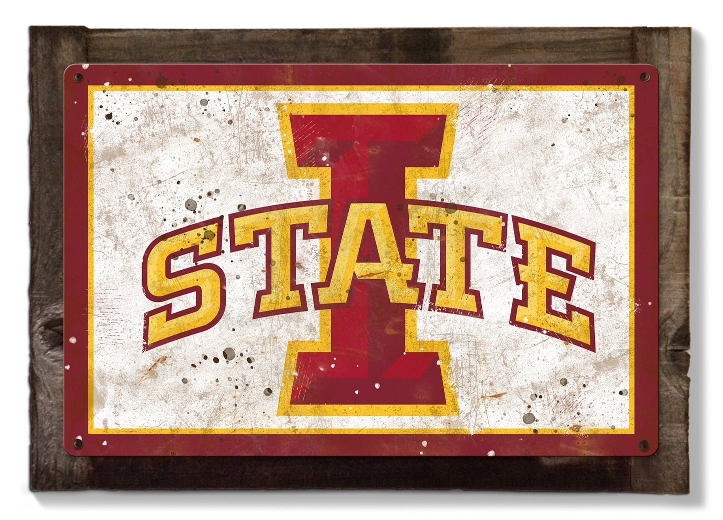 Iowa State Wall Art, NCAA Rustic Metal Sign, Optional Rustic Wood Frame, College Teams, Mascots, and Sports