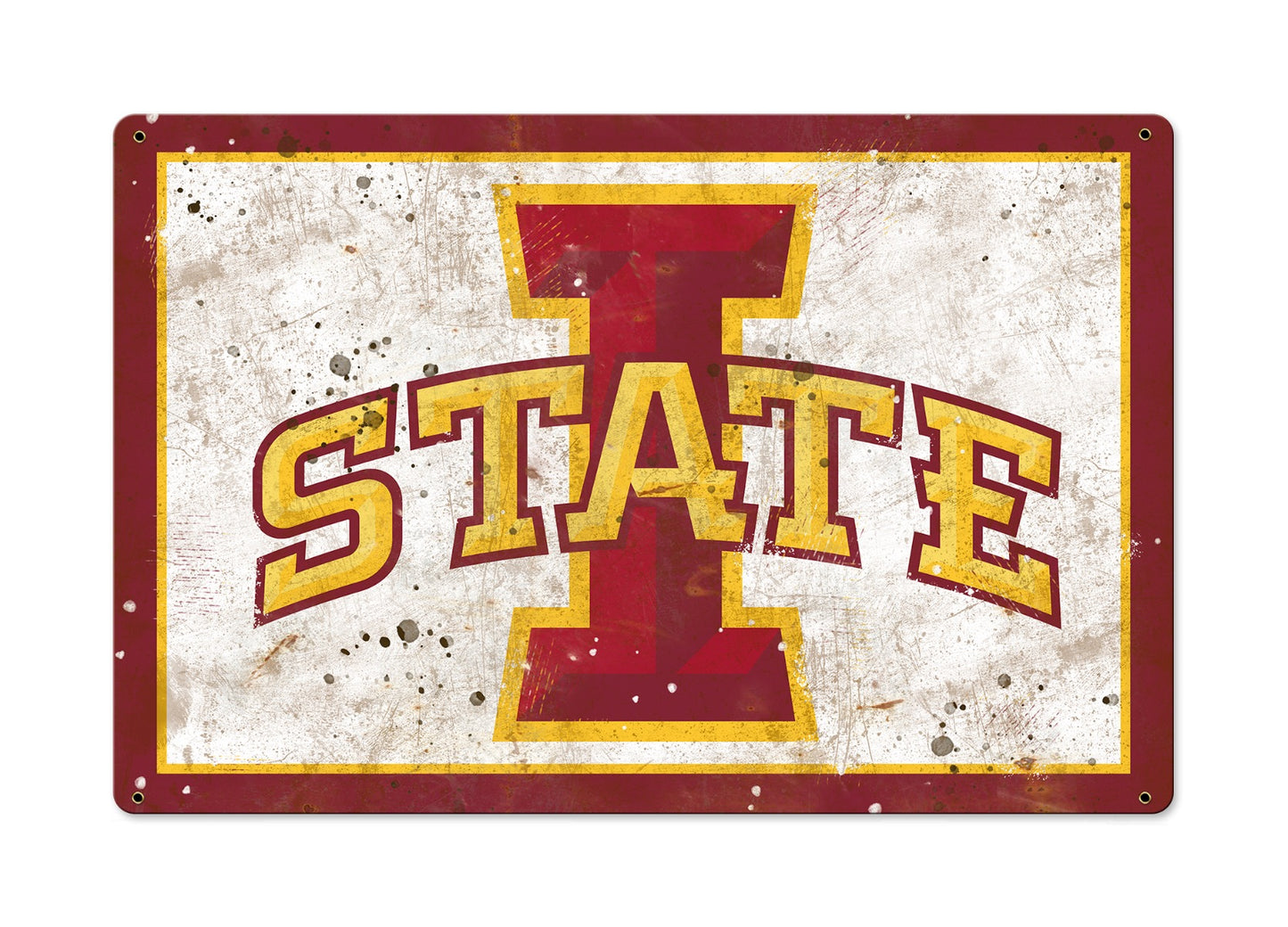 Iowa State Wall Art NCAA metal sign is made from 24 gauge American steel (No Flimsy Tin Here). Select from three different sizes: Large, Medium, Small. Also, available with an optional rustic wood frame. Designs are baked into a powder coating for a durable finish. Unlike other tin signs, canvas prints, and posters, our metal signs will not bend, fold, dent, or wrinkle over time. You can take a hammer to our signs. Our signs are hand made just like in the days. Rest assured these metal signs are made to last!