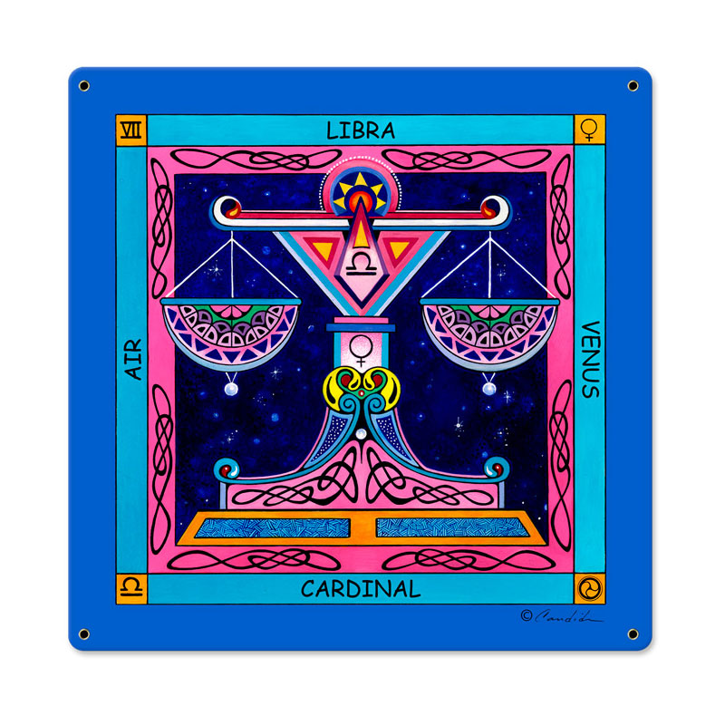 From the Black Box licensed collection, this Libra metal sign measures 18 inches by 18 inches and weighs in at 3 lb(s). This metal sign is hand made in the USA using heavy gauge American steel and a process known as sublimation, where the image is baked into a powder coating for a durable and long lasting finish. This metal sign