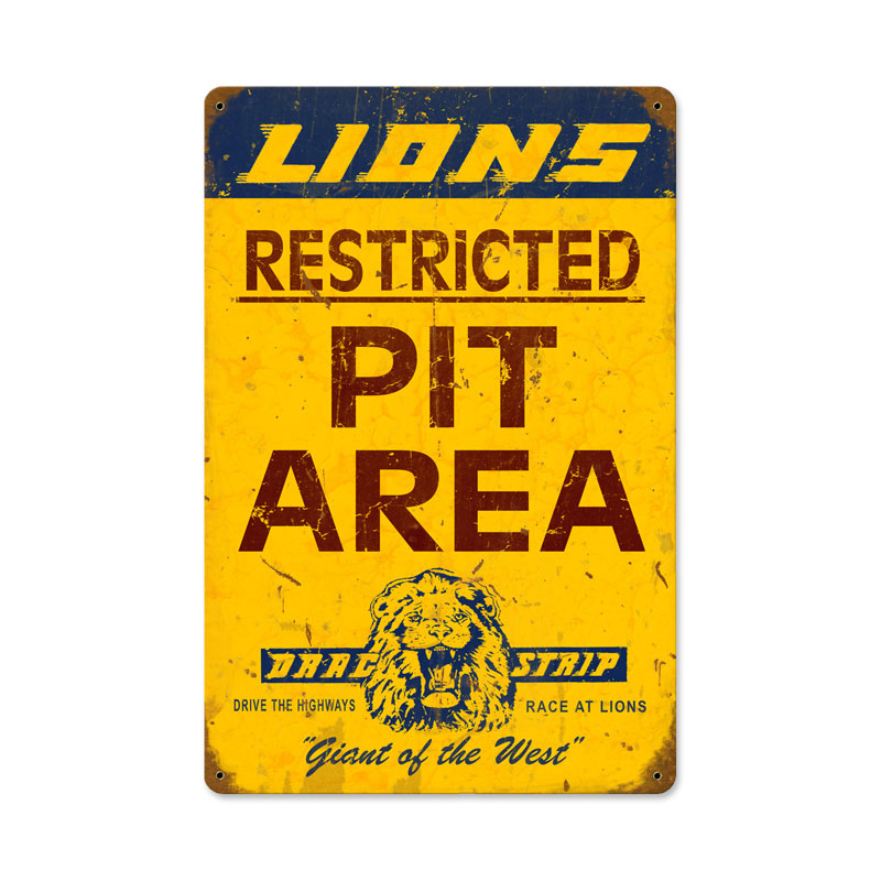 Lions Pit Area, Automotive, Vintage Metal Sign, 12 X 18 Inches