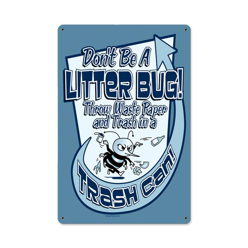From the Retro Planet licensed collection, this Litterbug metal sign measures 12 inches by 18 inches and weighs in at 2 lb(s). This metal sign is hand made in the USA using heavy gauge American steel and a process known as sublimation, where the image is baked into a powder coating for a durable and long lasting finish. This metal sign