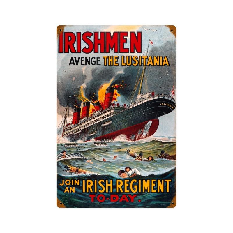Lusitania, Allied Military, Vintage Metal Sign, 12 X 18 Inches