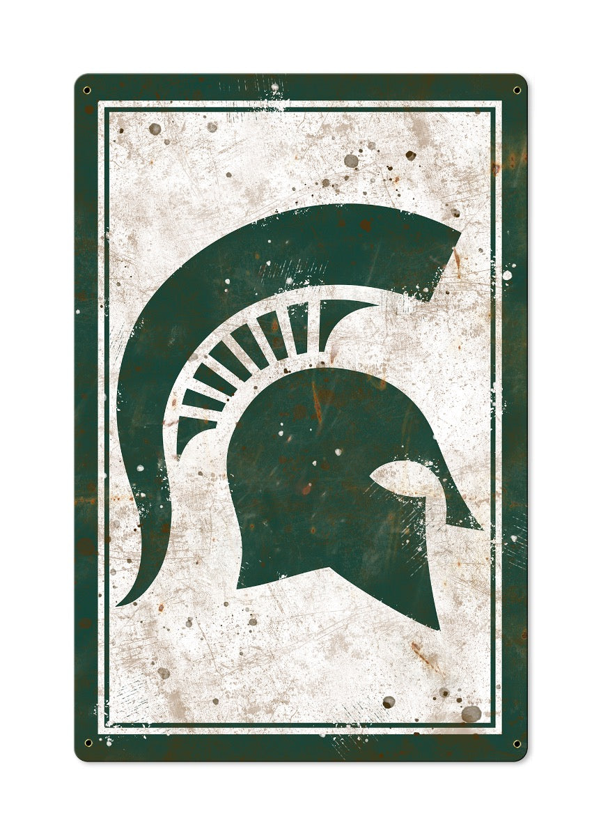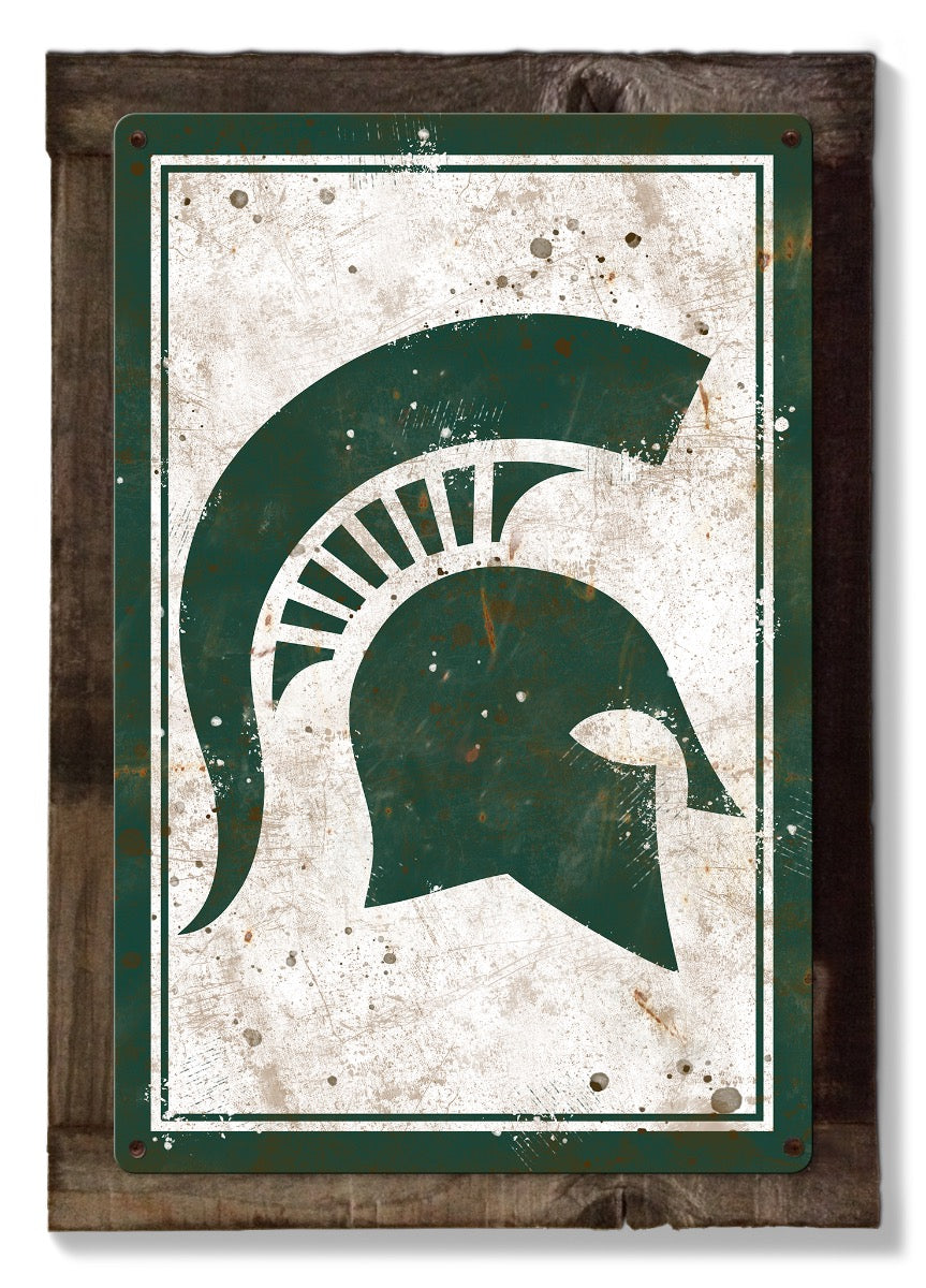 Michigan State Spartans Wall Art NCAA metal sign is made from 24 gauge American steel (No Flimsy Tin Here). Select from three different sizes: Large, Medium, Small. Also, available with an optional rustic wood frame. Designs are baked into a powder coating for a durable finish. Unlike other tin signs, canvas prints, and posters, our metal signs will not bend, fold, dent, or wrinkle over time. You can take a hammer to our signs. Our signs are hand made just like in the days. Rest assured these metal signs are made to last!