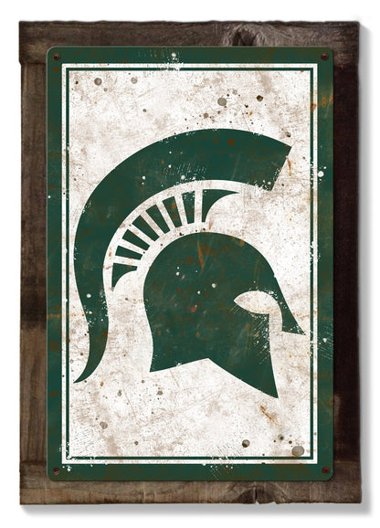 Michigan State Spartans Wall Art, NCAA Rustic Metal Sign, Optional Rustic Wood Frame, College Teams, Mascots, and Sports