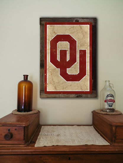 Oklahoma Sooners Wall Art, Rustic Metal Sign, Optional Rustic Wood Frame, College Teams, Mascots, and Sports