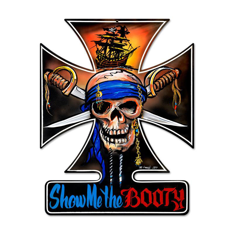 This Pirate Cross iron cross metal sign measures 15 inches by 19 inches and weighs in at 2 lb(s). This iron cross metal sign is hand made in the USA using heavy gauge American steel and a process known as sublimation, where the image is baked into a powder coating for a durable and long lasting finish. This iron cross metal sign