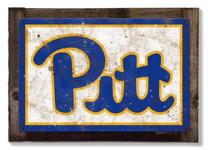 Pittsburg Panthers Wall Art, NCAA Rustic Metal Sign, Optional Rustic Wood Frame, College Teams, Mascots, and Sports